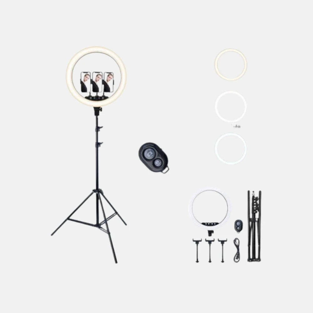 Aro de luz de 45 cm que aporta una gran iluminación en tu cabina, facilita los servicios como extensiones de pestañas, lifting, aportando un extra de iluminación. Puedes modificar el color de led.