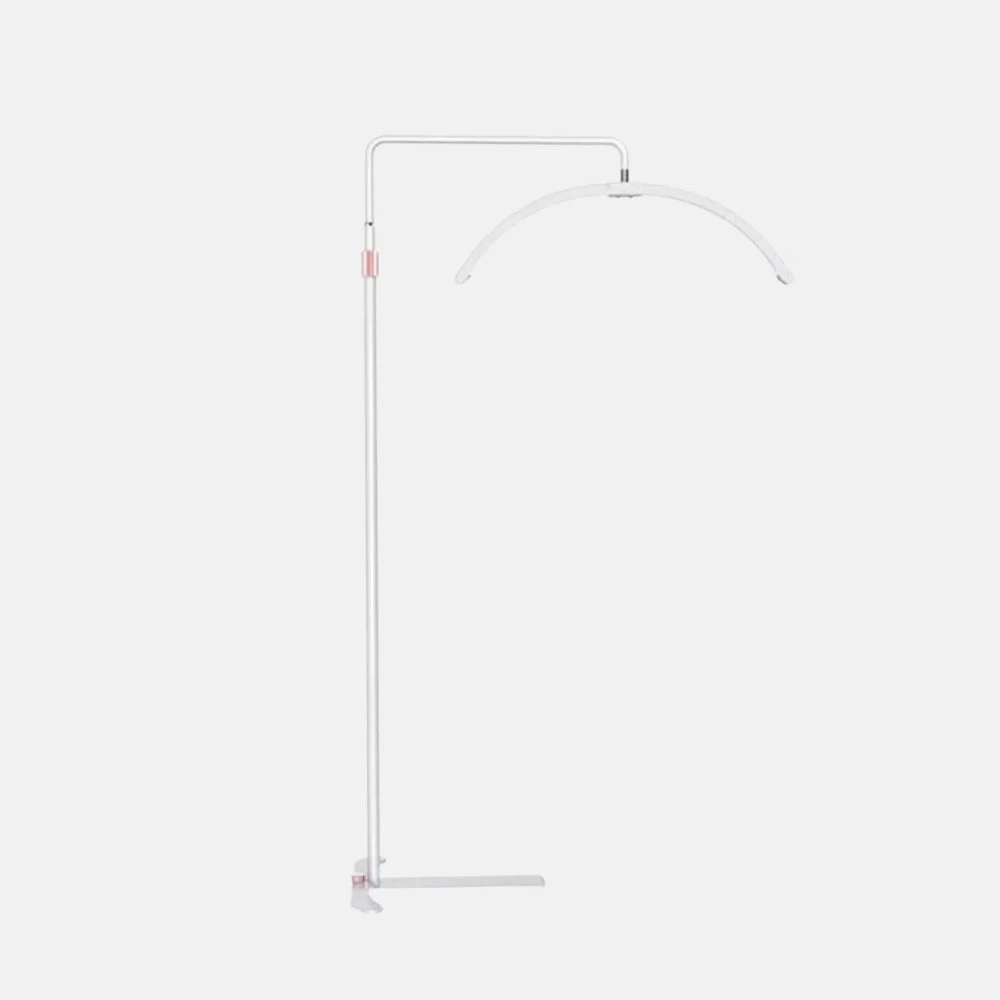 Lámpara de pie con forma de media luna. Su diseño de media luna ayuda a reducir las sombras para facilitar la iluminación en los servicios como pestañas, micropigmentación etc. Su diseño ligero facilita su montaje y su traslado, aporta alta calidad en la imagen de fotos y videos. Contiene un mando para regular la intensidad de la luz.