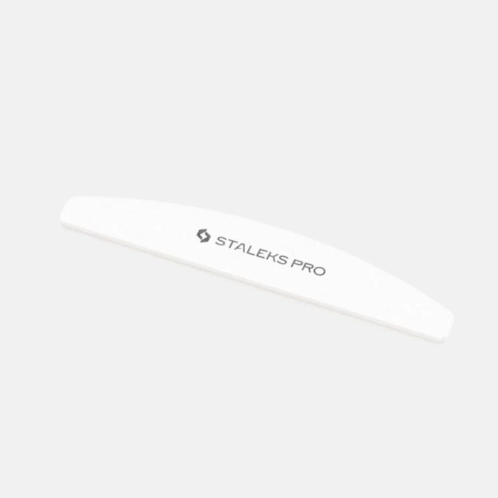 Lima pulidora con forma de media luna. Prepara la placa de la uña para los servicios de esmaltado permanente. Pule y elimina las irregularidades de las uñas construidas.