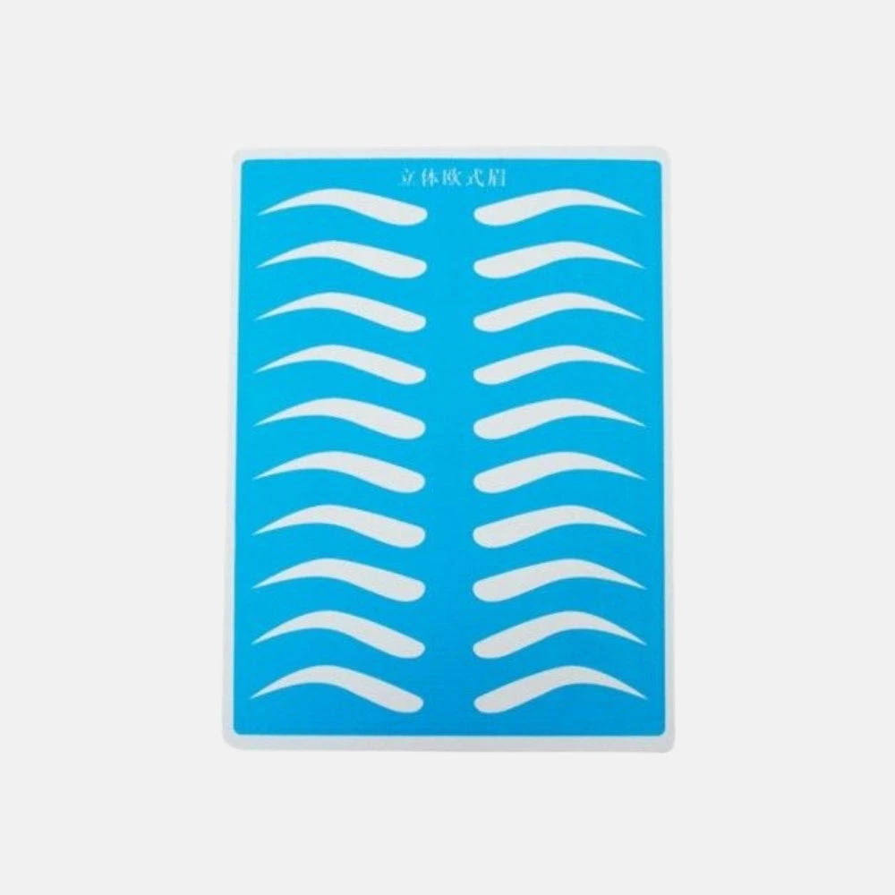 Plantilla de silicona que simula la piel para realizar prácticas de microblading. Por un lado tiene 10 pares de cejas sin rellenar perfectas para dibujar el pelo natural. La otra cara está en blanco.