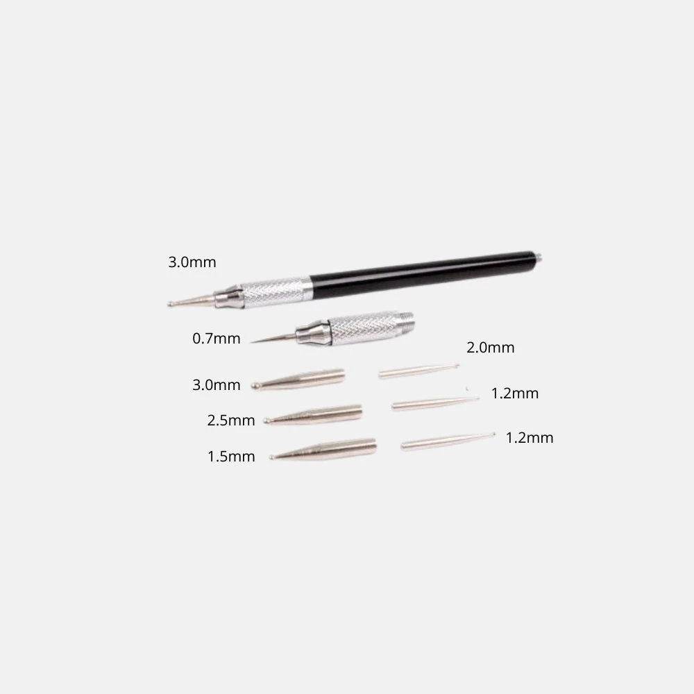 En Seena Owell tienes disponible un punzón con 8 puntas distintas para realizar todas las decoraciones con puntos que deseen tus clientas, este tipo de punzón también se utiliza para realizar la manicura francesa. En el interior del punzón puedes guardar las puntas que no estés utilizando en ese momento.