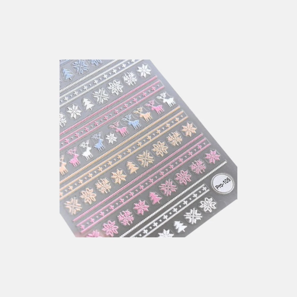 Adhesivo 3D de diseños invernales con tonos pastel que podrás combinar para crear manicuras diferentes. Coloca 1 capa de Top Finish después de asegurarte que el sticker esté bien pegado en la posición deseada.